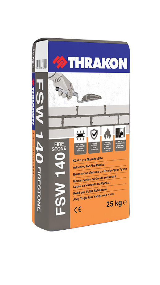 FSW 140 е дебелослойно, полимер-модифицирано лепило за залепване, фугиране и поправка на огнеупорни тухли при изграждане на камини, пещи, комини, барбекюта и др.