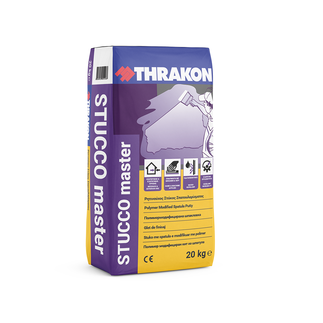 STUCCO MASTER DEC 480 is a one component ready mix, cement based spatula putty, used indoor and outdoor as a finishing layer on plastered surfaces, gypsum boards or smooth concrete that are going to be coated either with paint or wallpaper. It contains special admixtures that improve the workability of the mortar and increase its strengths. It is produced and controlled according to EN 998-1. It replaces the traditional stuccos and oil stuccos, while covering larger areas in comparison with them.