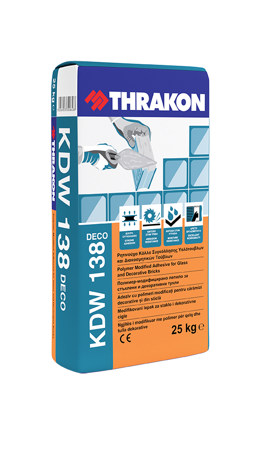 KDW 138 is a polymer modified cement based mortar for fixing and grouting decorative building elements like glass bricks, artificial stone, decorative bricks. It consists of cement, mineral fillers and admixtures. It is produced and tested according to ΕΝ 998-2.