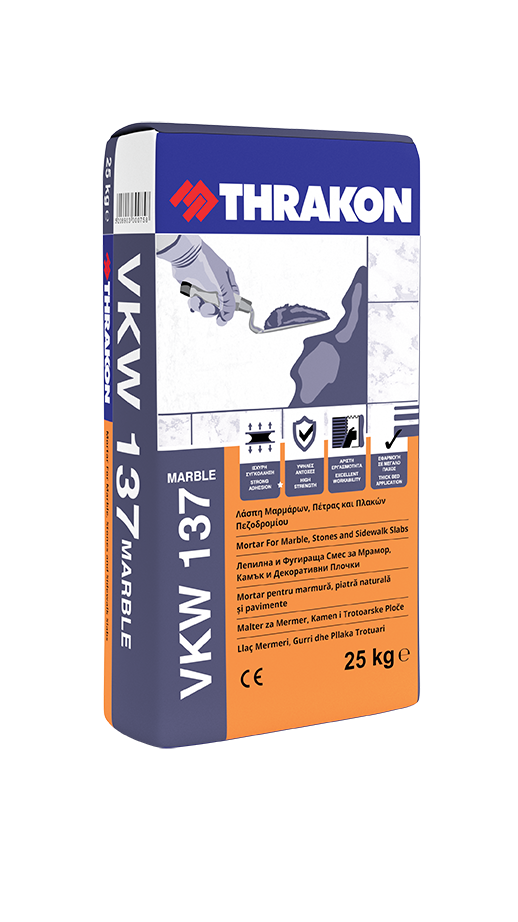 VKW 137 is a ready cement-based mortar for bonding marbles on floors, stone, and for bonding – grouting of pavement plates. It consists of special additives to avoid the deterioration of the marble color.