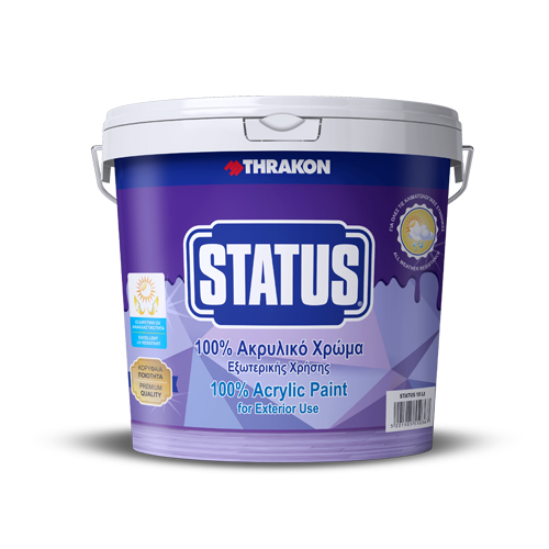 Το STATUS 100% ΑΚΡΥΛΙΚΟ είναι ένα υψηλής ποιότητας ακρυλικό χρώμα εξωτερικής χρήσης βασισμένο δε 100% ακρυλικές ρητίνες.