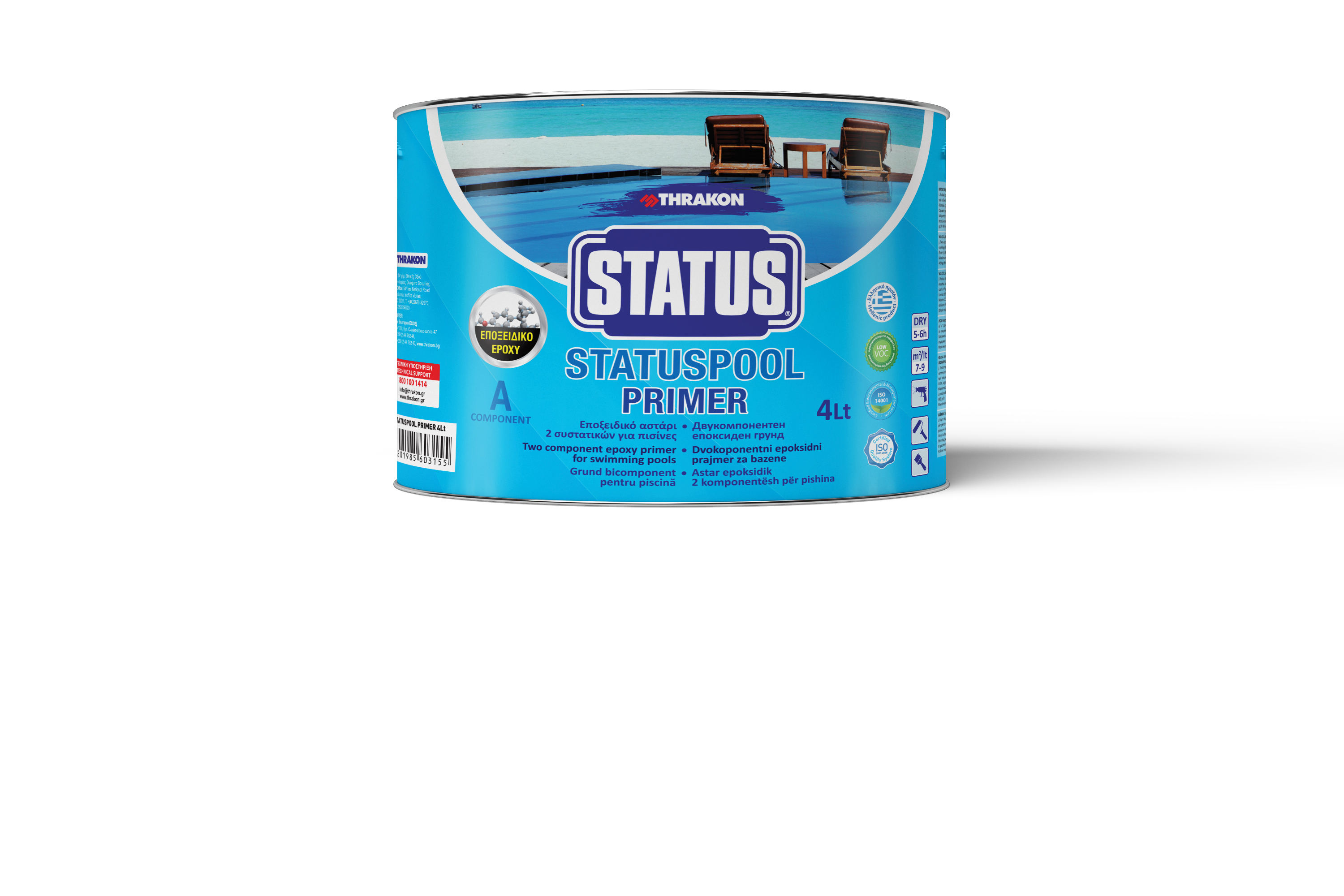 Το STATUSPOOL PRIMER χρησιμοποιείται για το αστάρωμα του σκυροδέματος σε καινούργιες πισίνες ή σε τοπικές επισκευές του παλαιού υποστρώματος. Αφού στεγνώσει καλά, βάφεται με το τελικό χρώμα STATUSPOOL. Όπου χρειάζεται στοκάρισμα προτείνεται ο εποξειδικός στόκος CARMYPOX EG – 10.